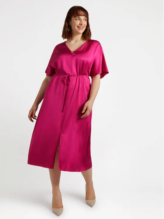 Vestito lungo in raso di viscosa con scollo a V e dettaglio cut out, laccetto da annodare in vita; #livefree together perché: le fibre LENZING™ ECOVERO™ derivano da fonti di legno controllate o certificate e supportano morbidezza e drappeggio naturali