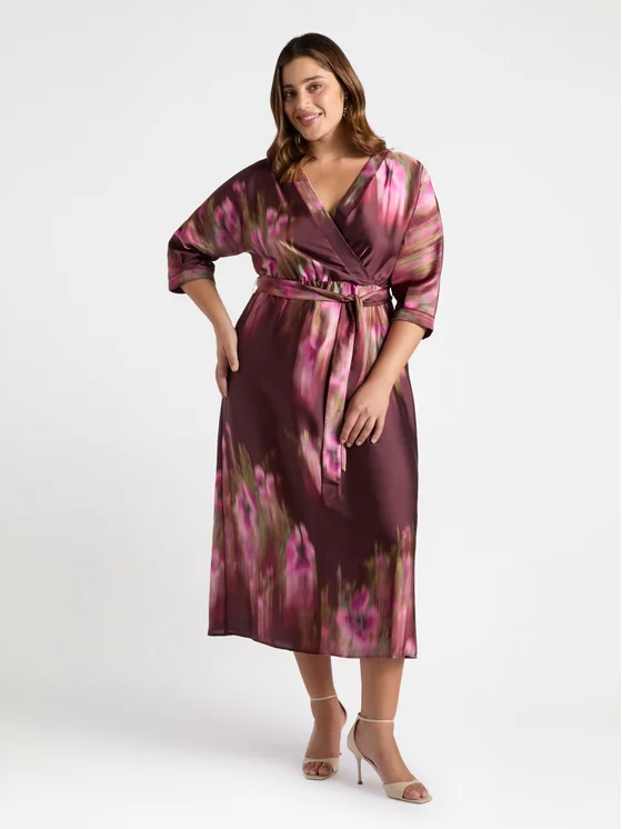 Vestito dalla stampa sfumata con scollo a V, fusciacca rimovibile, maniche a tre quarti; #livefree together perché: creato con materiali in parte riciclati (min. 20%) in modo da limitare l'utilizzo di materie prime vergini; perfetto anche per i momenti speciali