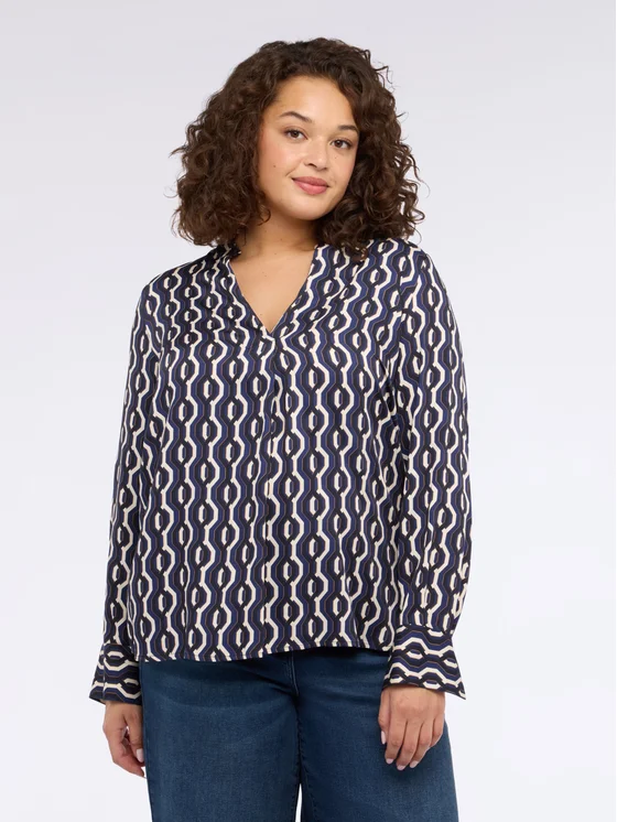 Scollo a V e maniche lunghe con stampa geometrica; tessuto in raso di viscosa per una sensazione piacevole sulla pelle; perfetta per i look quotidiani; pensata e realizzata in Italia.