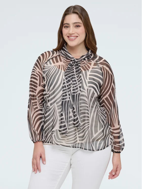 Colletto con fiocco, maniche lunghe con polsini elastici; comodo top in jersey da indossare sotto; perfetta per i momenti speciali e per i look quotidiani; pensata e realizzata in Italia.