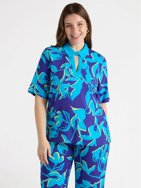 Blusa floreale in viscosa LENZING™ ECOVERO™ , con colletto e linea boxy; #livefree together perché: le fibre LENZING™ ECOVERO™ derivano da fonti di legno controllate o certificate e supportano morbidezza e drappeggio naturali; tessuto fresco e leggero per una sensazione piacevole sulla pelle.