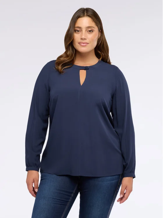 Blusa con scollo a girocollo e apertura a V con bottone; maniche lunghe con polsini elasticizzati; realizzata in morbida mussola di viscosa per il massimo del comfort; per look versatili dall'ufficio al tempo libero.
