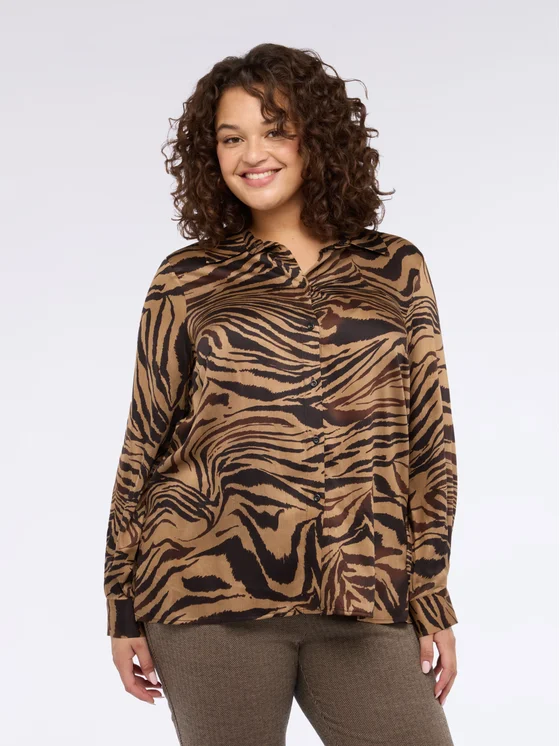 Colletto, maniche lunghe e chiusura con bottoni; tessuto in raso di viscosa; per look validi dal mattino alla sera; pensata e realizzata in Italia.