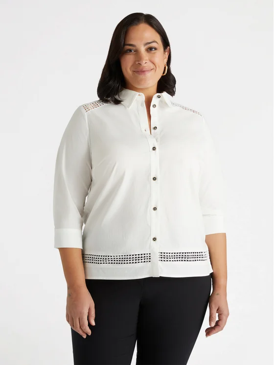 Camicia boxy con ricamo a-jour sulle spalle e al fondo