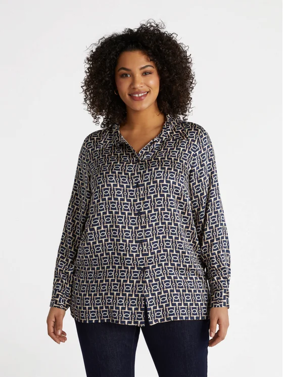 Camicia in raso dalla stampa catene; si asciuga rapidamente; perfetta per i momenti speciali e per i look quotidiani .
