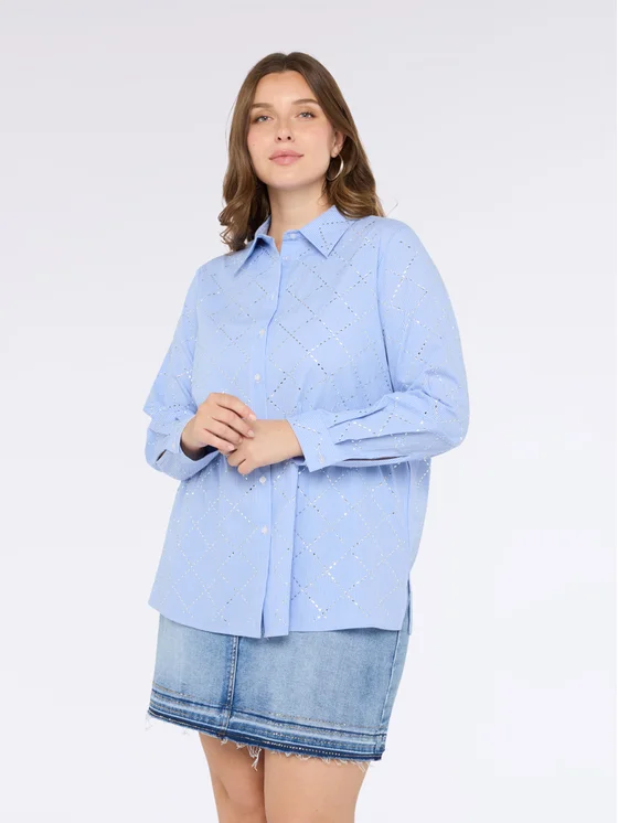 Colletto classico, maniche lunghe con polsini e chiusura con bottoni; tessuto in popeline di cotone a microrighe con motivo a rombi ricamato; vestibilità e design per il massimo del comfort.