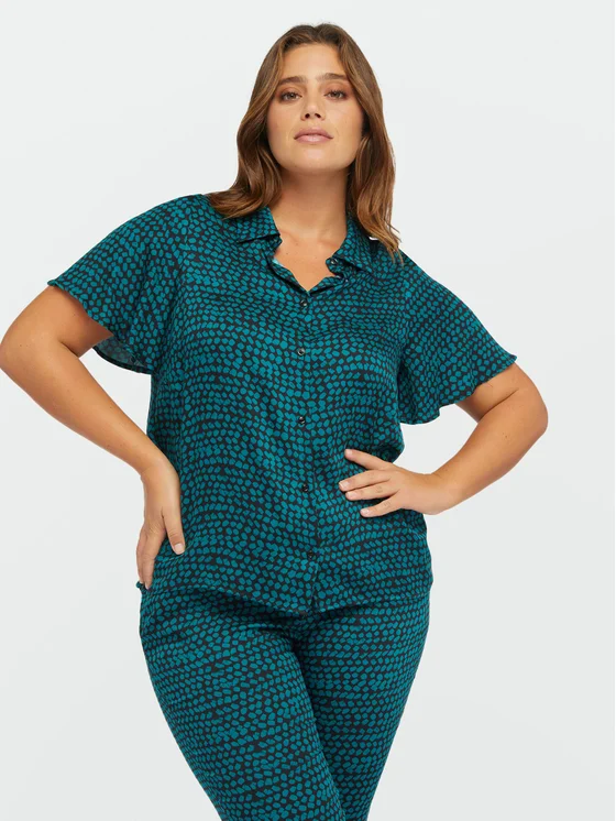 Camicia con fantasia stampata, maniche corte ad aletta e bottoni davanti; si asciuga rapidamente ed è facile da stirare; crea il total look con i pantaloni coordinati.