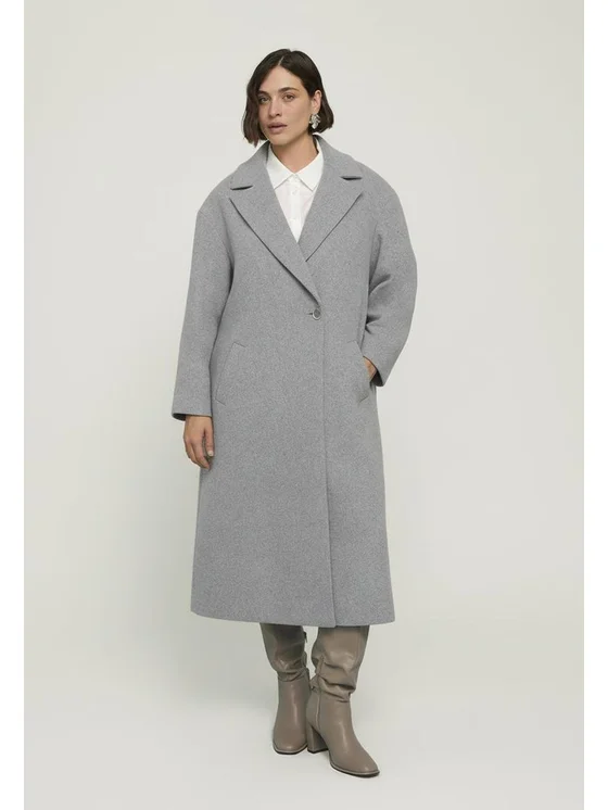 Cappotto lungo monopetto con collo a revers e maniche lunghe; vestibilità svasata e chiusura con bottone singolo; realizzato in panno misto lana per un caldo comfort; versatile e facile da abbinare.