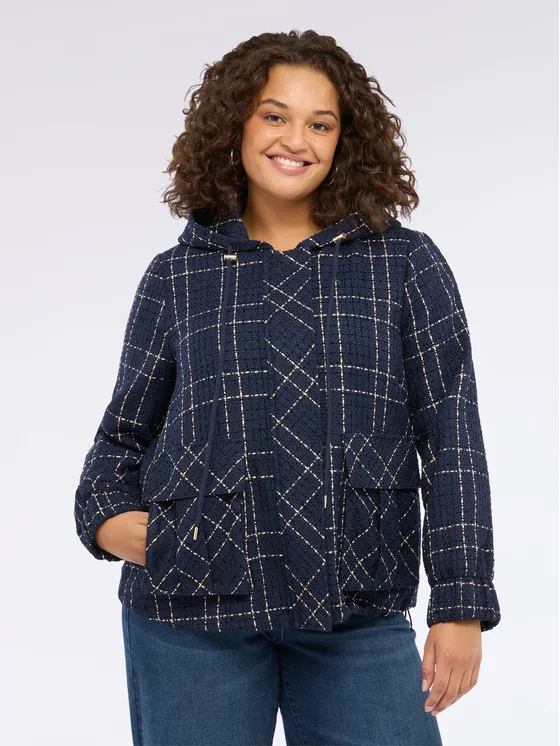 Chiusura con bottoni e zip; tessuto jacquard a quadri con lavorazione in rilievo; vestibilità svasata per un comfort ottimale; versatile e facile da abbinare a diversi look.