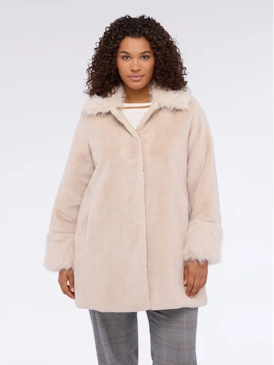 Tessuto peluches; vestibilità svasata con dettagli in tessuto morbido su collo e fondo maniche; chiusura frontale con bottoni a scomparsa; perfetto per i momenti speciali e per i look quotidiani.