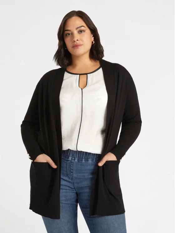 Maxi cardigan in filato con viscosa LENZING™ ECOVERO™, bottoni a fondo maniche; #livefree together perché: le fibre LENZING™ ECOVERO™ derivano da fonti di legno controllate o certificate e supportano morbidezza e drappeggio naturali; combinazione perfetta tra qualità e convenienza.