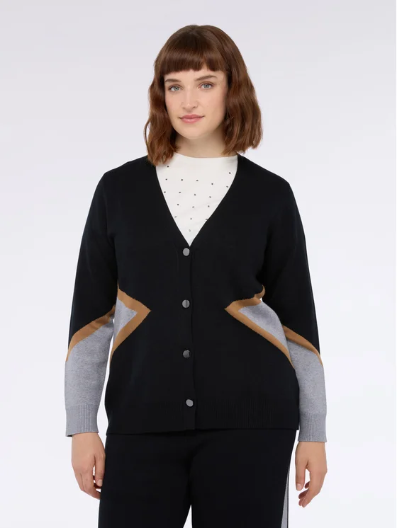 Scollo a V e chiusura frontale con bottoni a vista; vestibilità per il massimo comfort; #livefree together perché: le fibre LENZING™ ECOVERO™ derivano da fonti di legno controllate o certificate e supportano morbidezza e drappeggio naturali; crea il total look in maglia con i pantaloni coordinati!