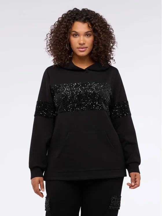 Tessuto scuba di misto viscosa; decorazioni con paillettes applicate su fascia centrale; vestibilità per il massimo comfort; crea il total look con i pantaloni coordinati.