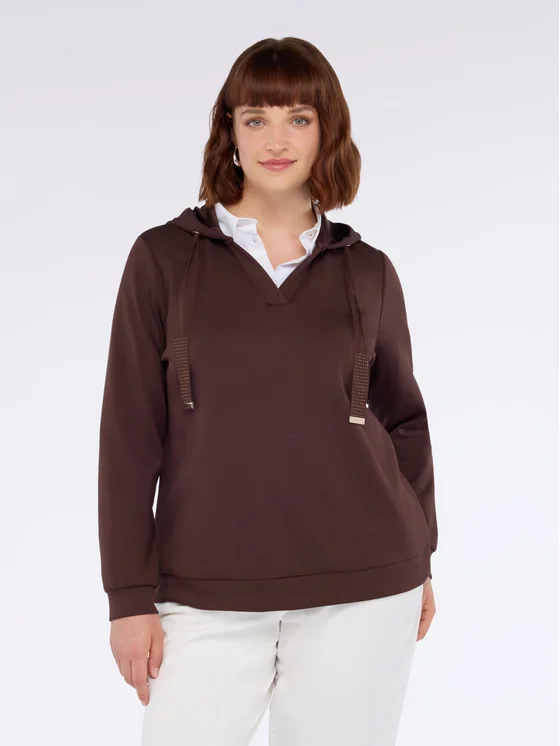 Felpa con cappuccio e scollo a V; realizzata in tessuto scuba misto modal; vestibilità e design per il massimo del comfort; perfetta per i tuoi daily look!