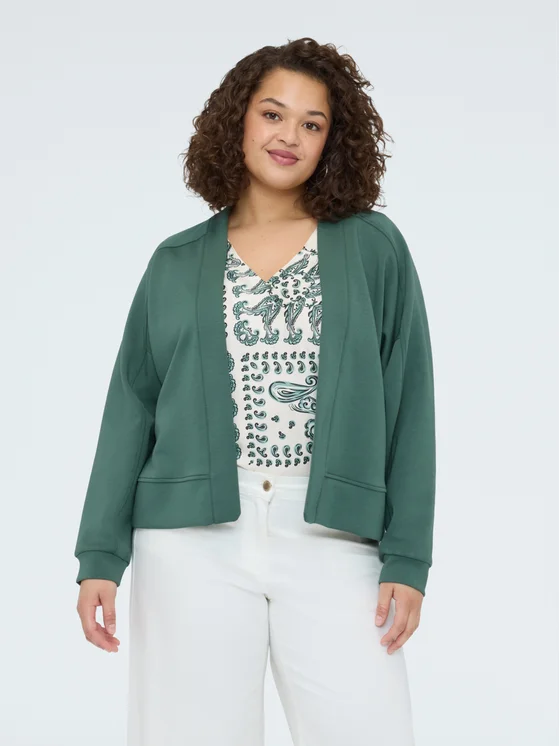 Tessuto scuba super morbido; maniche a kimono e taglio boxy; vestibilità e design per il massimo del comfort; perfetta da abbinare con pantaloni o denim per tutti i tuoi look!