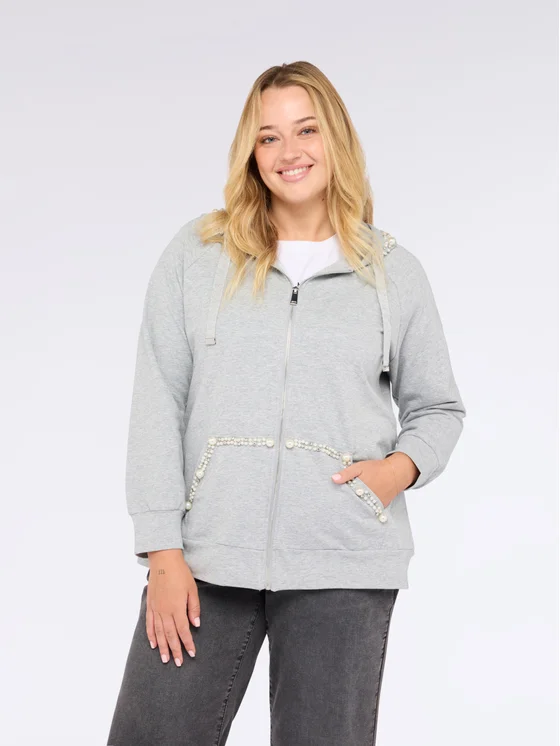 Felpa aperta con cappuccio, coulisse, zip e tasche; impreziosita da applicazioni decorative in perle e strass; vestibilità e design per il massimo del comfort; con questo capo sosteniamo Better Cotton Initiative™, il più grande programma di sostenibilità del cotone al mondo.