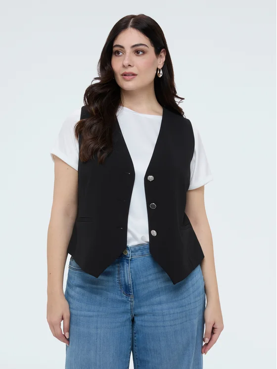 Semifoderato, chiusura a tre bottoni decorati; non ha bisogno di essere stirato, versatile e facile da abbinare, perfetto sotto il blazer o con una t-shirt; #livefree together perché: creato con materiali in parte riciclati (min. 20%) in modo da limitare l'utilizzo di materie prime vergini; questo capo nella versione nera è disponibile in esclusiva online.