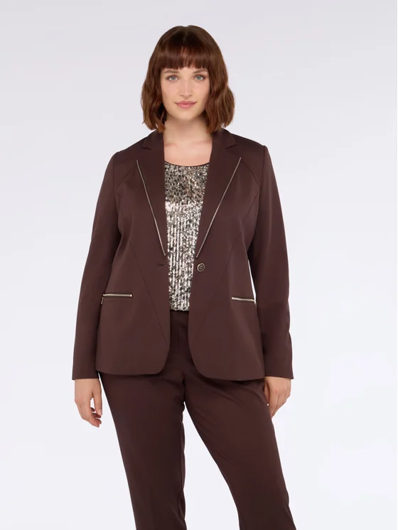 Tessuto morbido e confortevole punto Milano, modello monopetto con un bottone, tasche con zip ; vestibilità e design per il massimo del comfort; ideale per creare look da giorno e da sera; #livefree together perché: le fibre LENZING™ ECOVERO™ derivano da fonti di legno controllate o certificate e supportano morbidezza e drappeggio naturali.