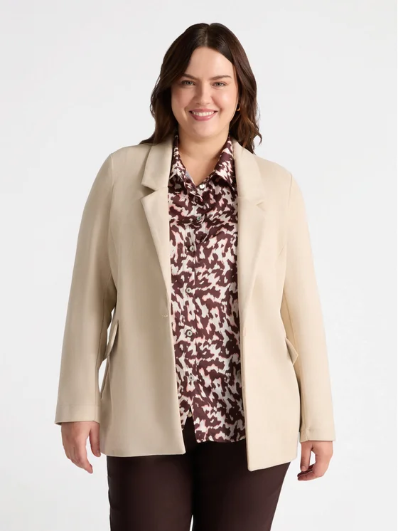 Blazer in morbido tessuto jersey soft touch; un bottone per chiusura, lunghezza a fianchi; versatile e ideale per le occasioni speciali e per i look quotidiani ; pensato e realizzato in Italia.