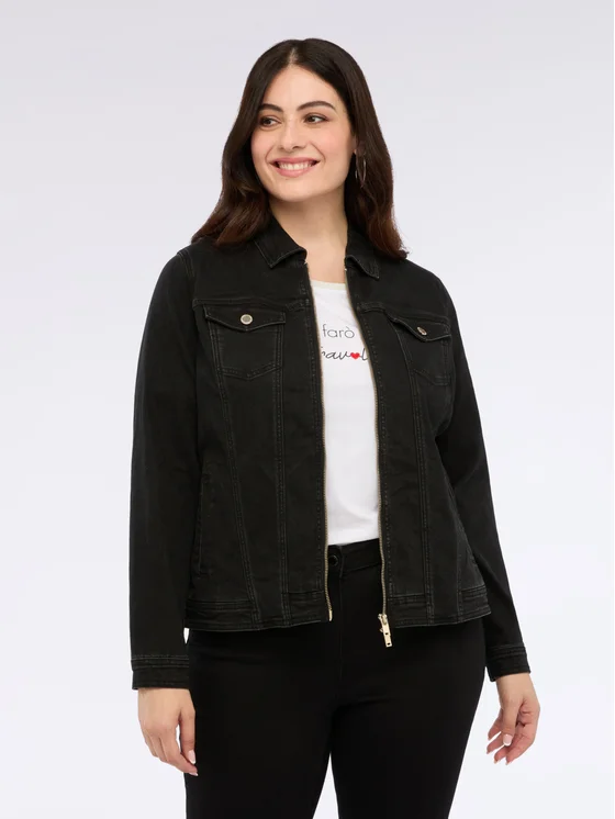 Giubbotto in denim con chiusura frontale a zip e tasche sul petto con bottoni a pressione; vetibilità e design per il massimo del comfort; lavaggio stone washed.