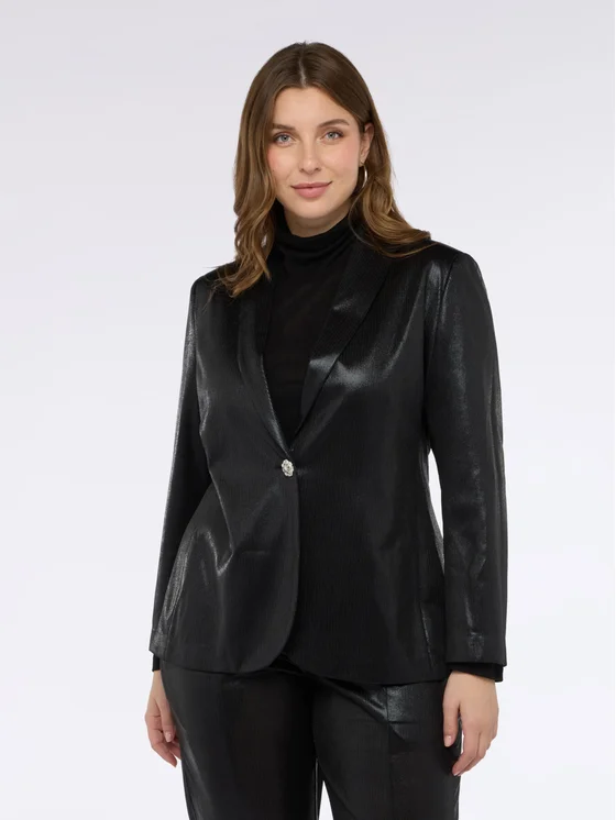 Lavorazione lurex e cintura in vita; chiusura monopetto con bottone gioiello; design per il massimo del comfort; perfetta per serate speciali e per look quotidiani!