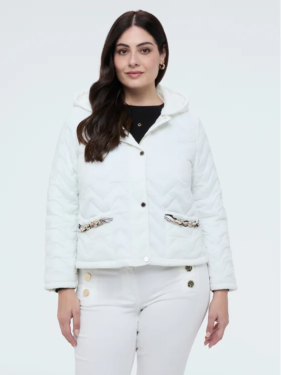 Trapuntatura motivo chevron, chiusura con bottoni e cappuccio rimovibile; tasche frontali impreziosite da applicazioni a catena decorative; vestibilità per un fit confortevole e contemporaneo; #livefree together perché: creato con materiali in parte riciclati (min. 20%) in modo da limitare l'utilizzo di materie prime vergini.