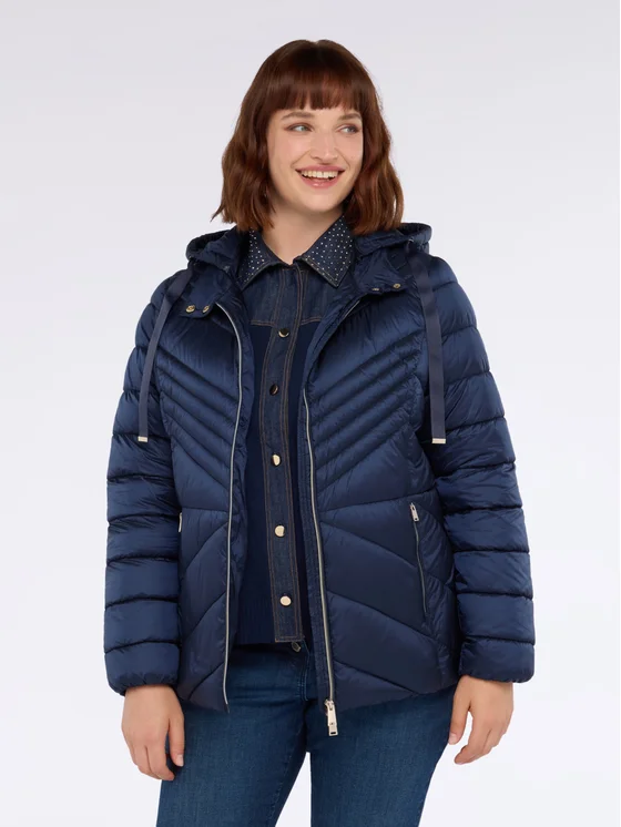 Piumino con cappuccio staccabile, coulisse, trapuntatura a chevron, chiusura con zip a doppio cursore, tasche laterali con zip; richiudibile nella tasca sinistra che si trasforma in un pratico sacchetto perfetto da portare sempre con te; combinazione perfetta tra qualità e convenienza; #livefree together perché: imbottitura in Sorona® Aura, filato composto per il 37% da fonti rinnovabili.