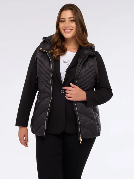 Piumino leggero smanicato con cappuccio, coulisse regolabile e chiusura frontale a zip; trapuntatura diagonale a chevron e tasche laterali con zip; versatile e facile da abbinare; #livefree together perché: imbottitura in Sorona® Aura, filato composto per il 37% da fonti rinnovabili.