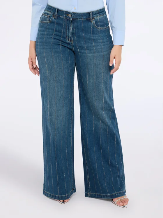 Jeans Wide Leg con gessatura in strass; tasche classiche, chiusura con bottone e zip; #livefree together perché: fino al 60% di acqua risparmiata in fase di lavaggio, grazie a tecnologie di ultima generazione (rispetto a lavaggi tradizionali); crea il total look con la giacca abbinata.