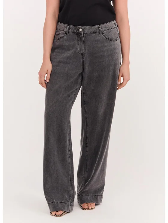 Modello Regular 5 tasche dalla linea dritta e confortevole; tessuto di denim leggero lavaggio grey washed; chiusura con bottoni e zip davanti e elastico in vita dietro; versatili e facili da abbinare per creare tanti look.