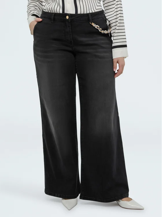 Modello Wide leg con charm applicato; lavaggio black effetto washed; vestibilità e design per il massimo del comfort; versatili e facili da abbinare per creare tanti look.