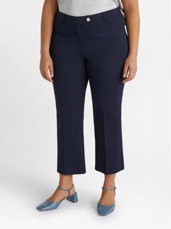 Pantaloni Kick Flare in punto milano dalla linea svasata al fondo; tasche orizzontali a filetto davanti, bordo in vita con bottone lucido; comodi, versatili e facili da abbinare; #livefree together perché: le fibre LENZING™ ECOVERO™ derivano da fonti di legno controllate o certificate e supportano morbidezza e drappeggio naturali.