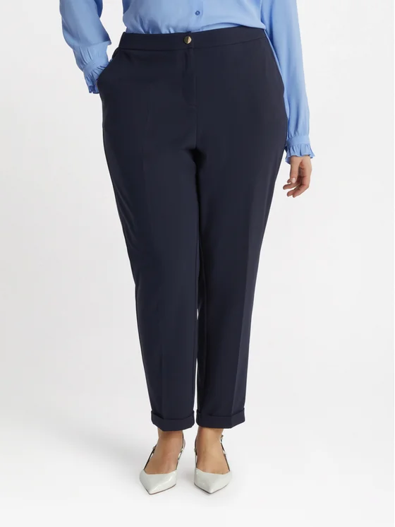 Linea morbida che si restringe leggermente alla caviglia; zip e bottone davanti, elegante design dalla piega stirata; vestibilità per il massimo del comfort