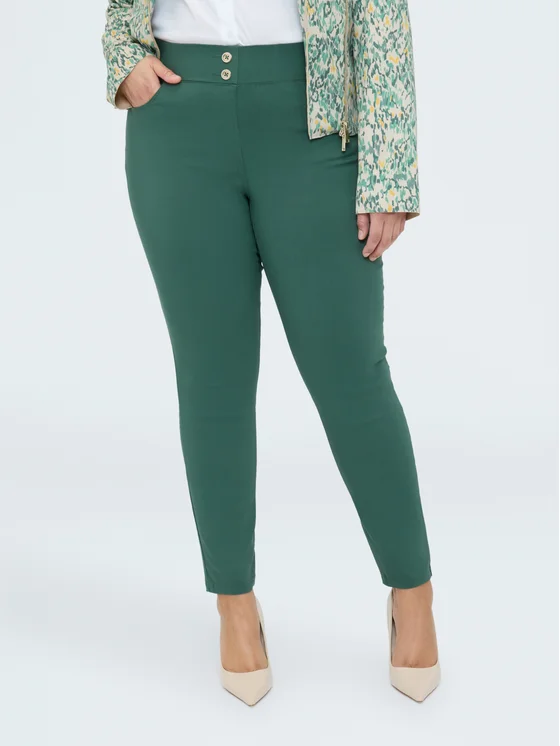 Fascia elastica in vita con bottoni decorativi; modello skinny dalla vestibilità aderente lungo tutta la gamba; per look validi dal mattino alla sera; #livefree together perché: le fibre LENZING™ ECOVERO™ derivano da fonti di legno controllate o certificate e supportano morbidezza e drappeggio naturali.