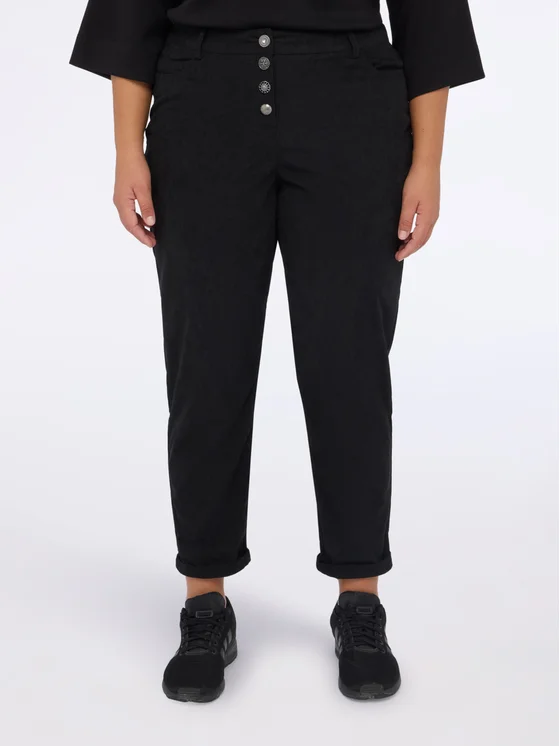 Chiusura frontale con 4 bottoni tutti dal design diverso; vestibilità comoda e design versatile per il massimo comfort; risvolti alle caviglie per un tocco di stile; ideali per creare look validi dal giorno alla sera.