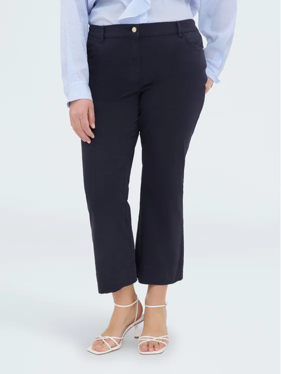 Chiusura con bottone e zip, tasche all'americana; gamba leggermente svasata al fondo e orlo taglio vivo; vestibilità e design per il massimo del comfort; versatili e facili da abbinare per i tuoi look quotidiani.