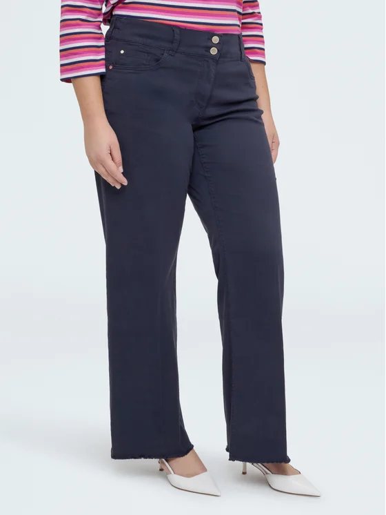 Chiusura con doppio bottone e zip; orlo con taglio vivo e design dalla piega stirata; versatili e facili da abbinare; per look validi dal mattino alla sera.