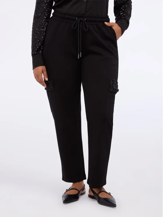 Tasche cargo laterali con applicazioni di paillettes; coulisse regolabile in vita per il massimo comfort; per look validi da mattino a sera; crea il total look con la camicia coordinata.