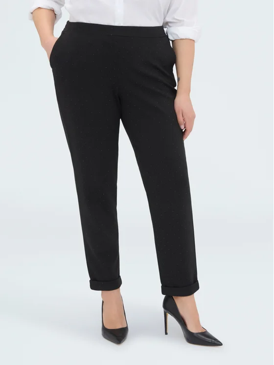 Tasche laterali, gamba affusolata e orlo ripiegato; vestibilità comoda con fascia elastica in vita per il massimo del comfort; versatili e facili da abbinare; pensati e realizzati in Italia.