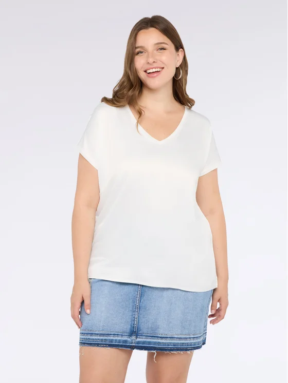 Scollo a V e maniche corte; raso davanti e jersey dietro, mixa due tessuti differenti per il massimo comfort; combinazione perfetta tra qualità e convenienza; versatile e facile da abbinare con diversi look.