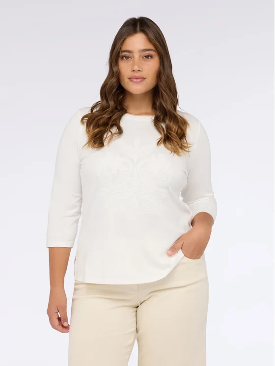 Scollo tondo e maniche a tre quarti; il tessuto jersey offre comfort e libertà di movimento; perfetta per essere indossata dal mattino alla sera con versatilità; abbinala ai tuoi jeans o pantaloni preferiti!.