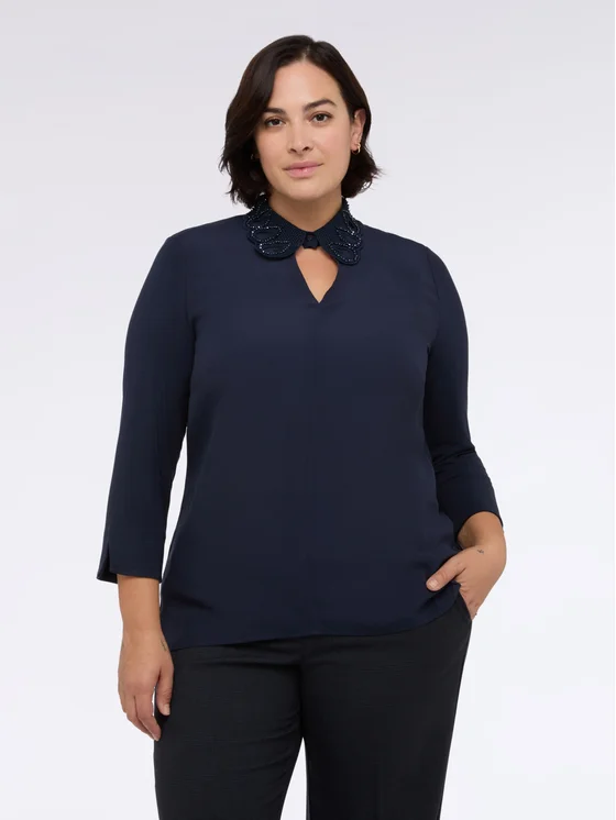 Colletto prezioso, maniche lunghe, tessuto bimaterico e taglio svasato; vestibilità e design per il massimo del comfort; #livefree together perché: le fibre LENZING™ ECOVERO™ derivano da fonti di legno controllate o certificate e supportano morbidezza e drappeggio naturali; per look validi dal mattino alla sera.