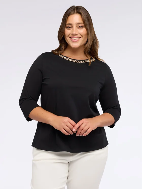 Scollo girocollo con dettaglio catena; maniche a tre quarti e taglio comodo; vestibilità e design per il massimo del comfort; con questo capo sosteniamo Better Cotton Initiative™, il più grande programma di sostenibilità del cotone al mondo.
