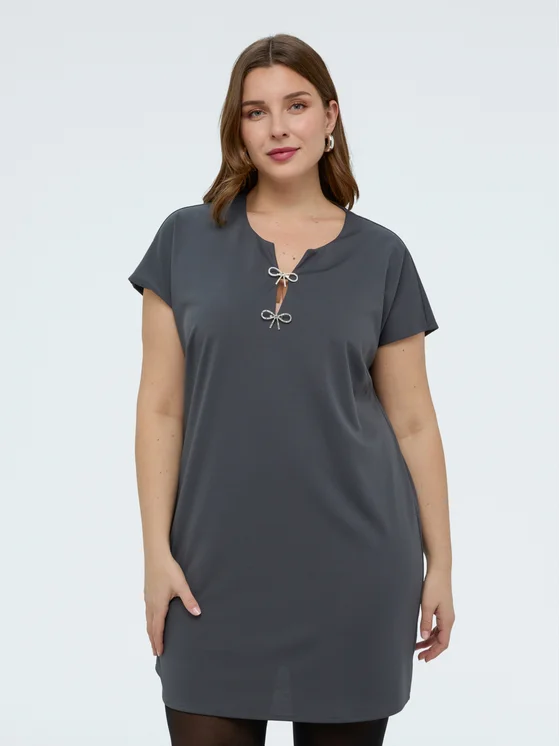 Tessuto Punto Milano e dettaglio con fiocchetti decorativi sul davanti; maniche corte; vestibilità comoda e design versatile per il massimo del comfort; perfetto per i momenti speciali e per i look quotidiani.