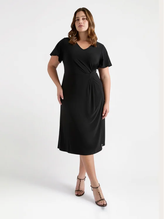 Vestito in jersey facile da abbinare, con passante in tessuto sul fianco e drappeggio