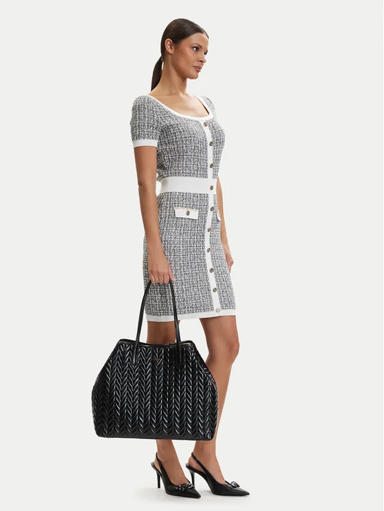 Elegante e pratica borsa shopper del marchio Guess è un accessorio indispensabile per ogni donna che apprezza stile e comodità. Realizzata in materiale sintetico di alta qualità, incanta con una texture goffrata e lucida che le conferisce carattere distintivo e un tocco moderno. La struttura a un unico scomparto offre spazio sufficiente per gli indispensabili quotidiani, mentre il design senza tempo si adatta perfettamente a diversi outfit — da quelli casual a quelli più eleganti. È un connubio unico di funzionalità e design alla moda.