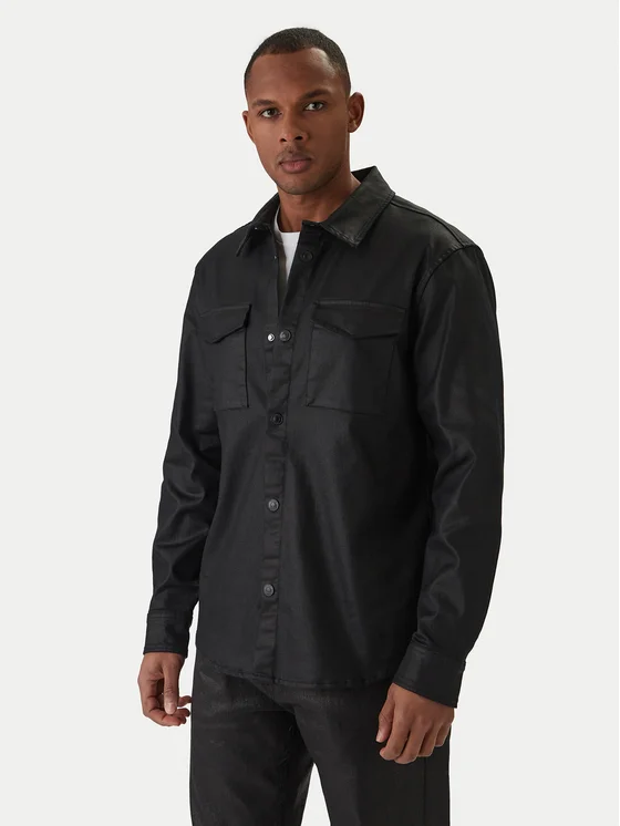 Guess camicia di jeans M6RH75 D6480 Nero Regular Fit