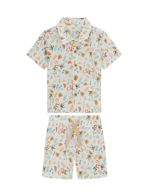 Completo camicia e pantaloncini I6GG09 WO730 Crema Regular Fit