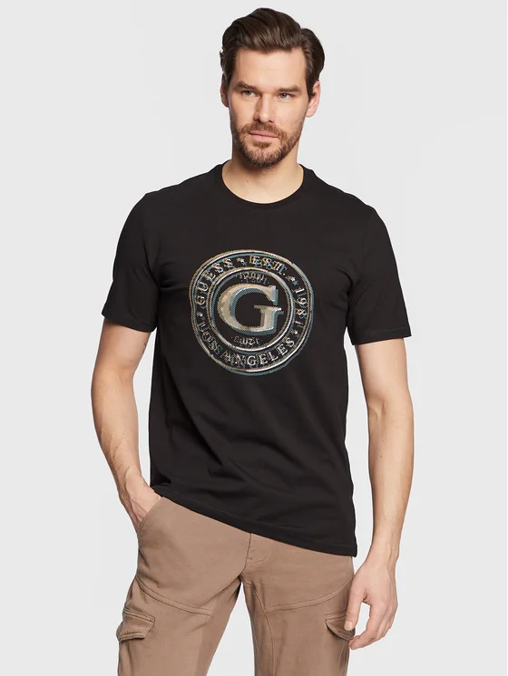 Guess T-shirt Round Logo M3GI11 J1314 Nero Slim Fit