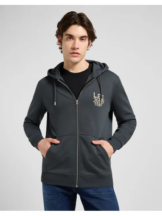 Lee Felpa Zip Hoodie Nero Regular Fit